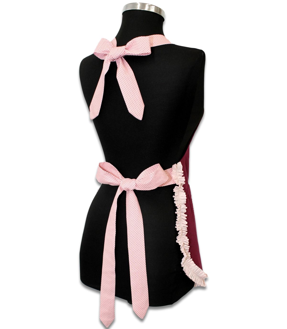 Cu un design foarte feminin, șorțul are 2 buzunare decorate cu fundițe drăgălașe numai bune pt a avea la indemână rețeta și ustensilele necesare.