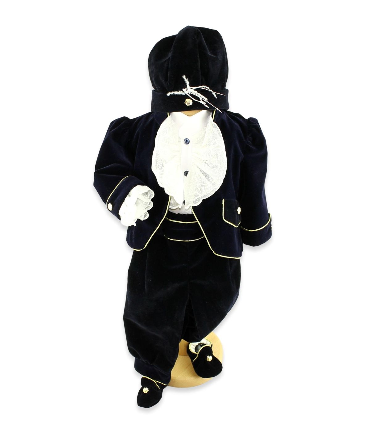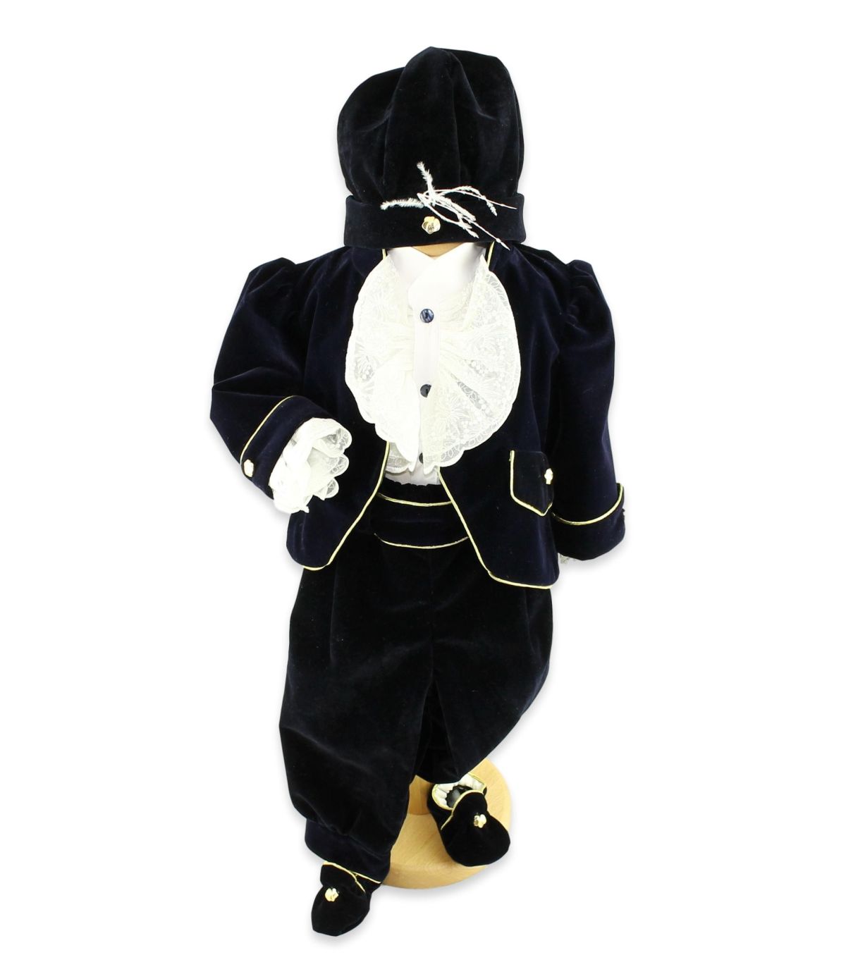 Set de botez de lux, din catifea bleumarine in care bebelusului va fii un adevarat print!