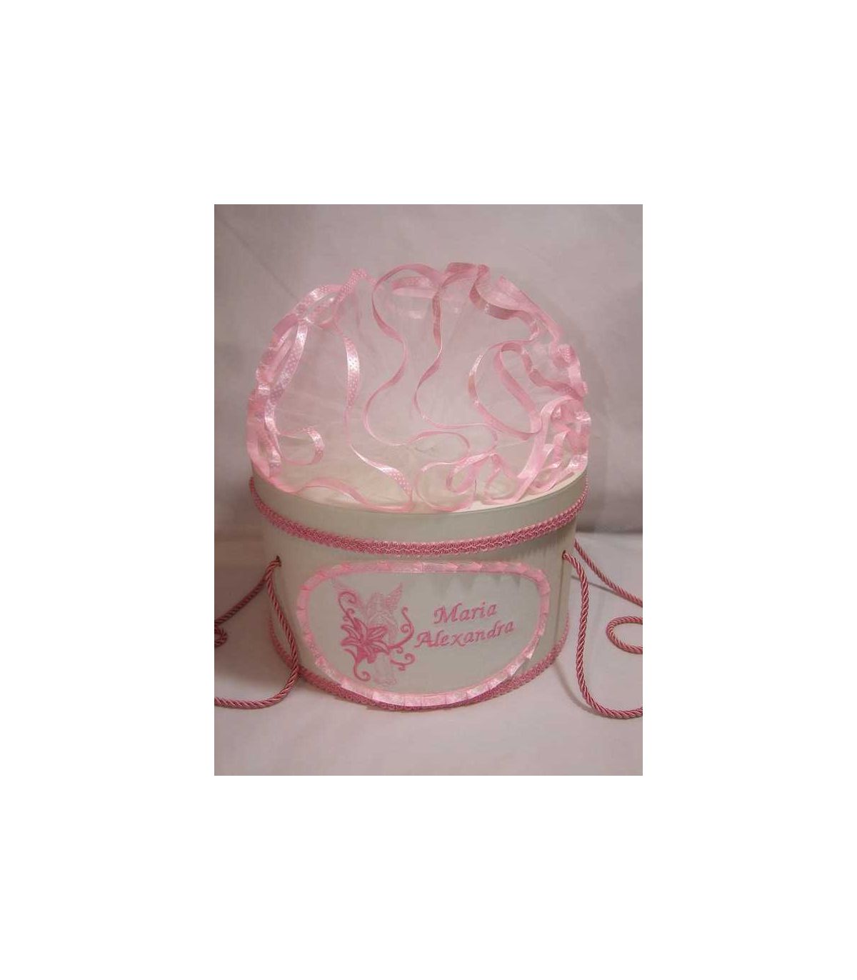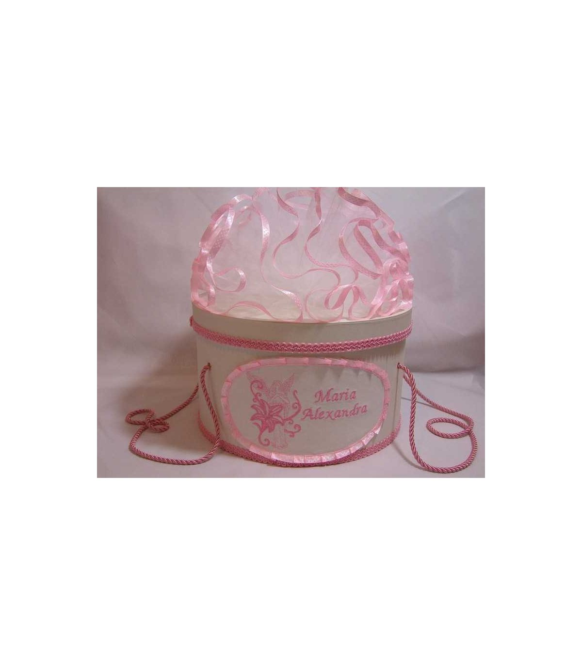 Avand dimensiuni generoase cu un diametru de 35 cm si inaltimea de 20 de cm, cutia rotunda pentru botez permite transportul trusoului, hainutelor, paturicii si a altor lucrusoare pe care le-ati selectat dumneavoastra.