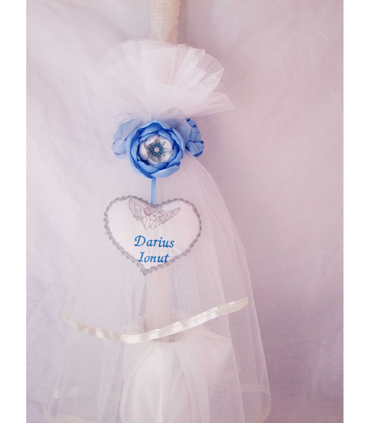 Lumanarile de botez realizate in Atelierele Cris sunt unicat , cu decoratiuni lucrate manual, personalizate si asortate trusoului de botez.