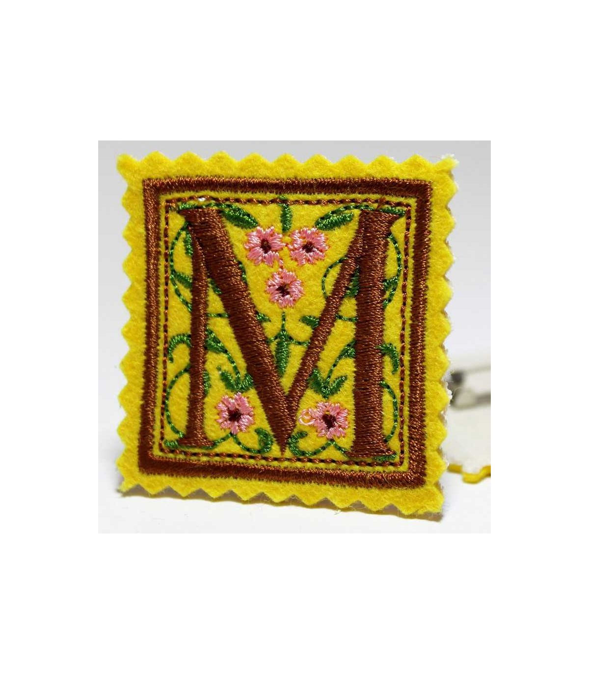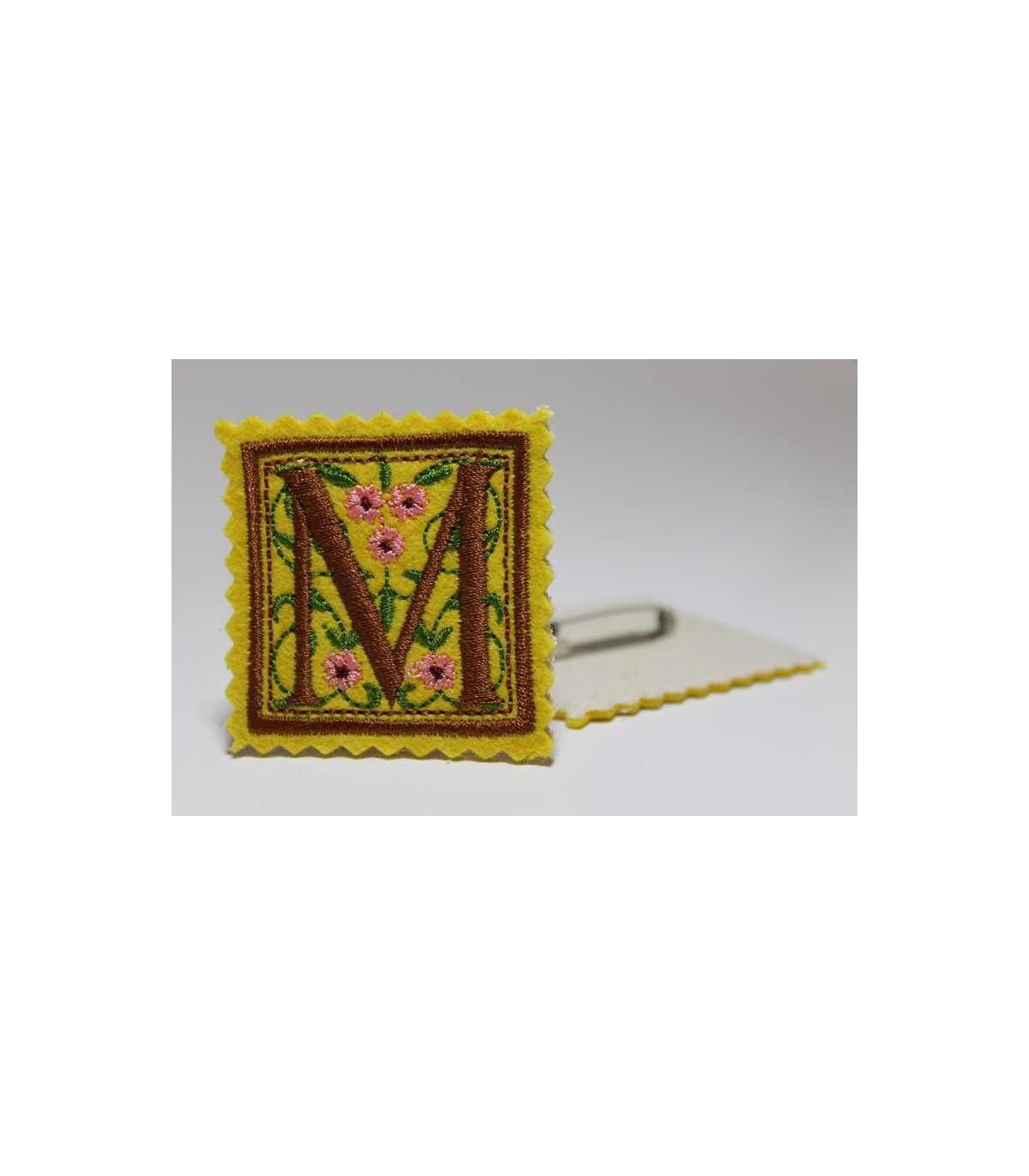 Aceasta marturie de botez tip brosa este personalizata prin brodarea initialelor pe cerculetul din material