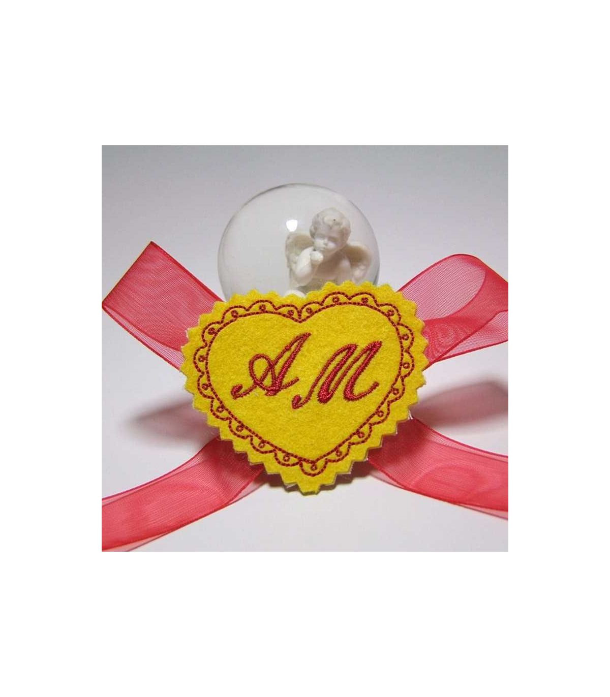 Marturie botez personalizata inimioara cu monograme AM