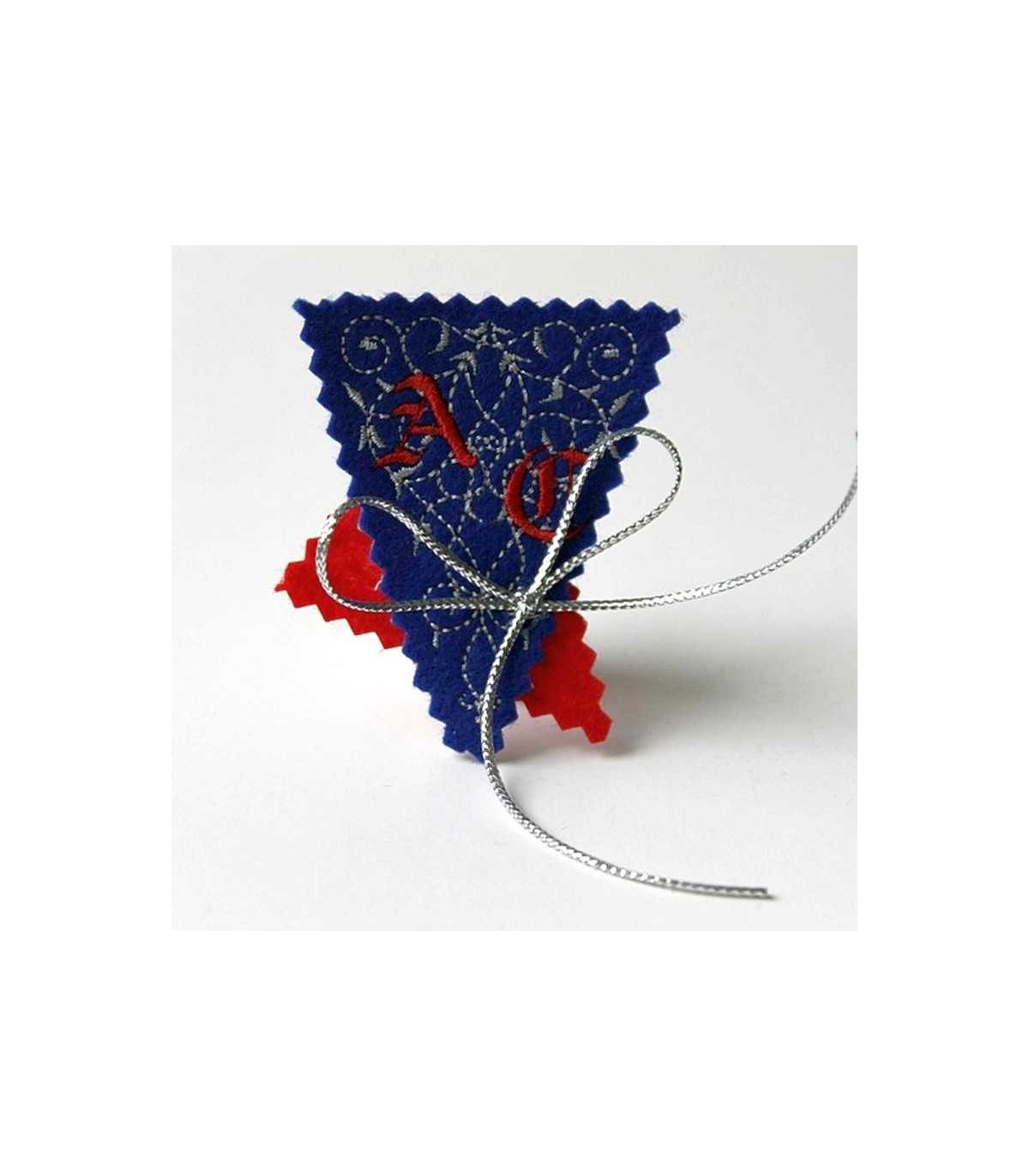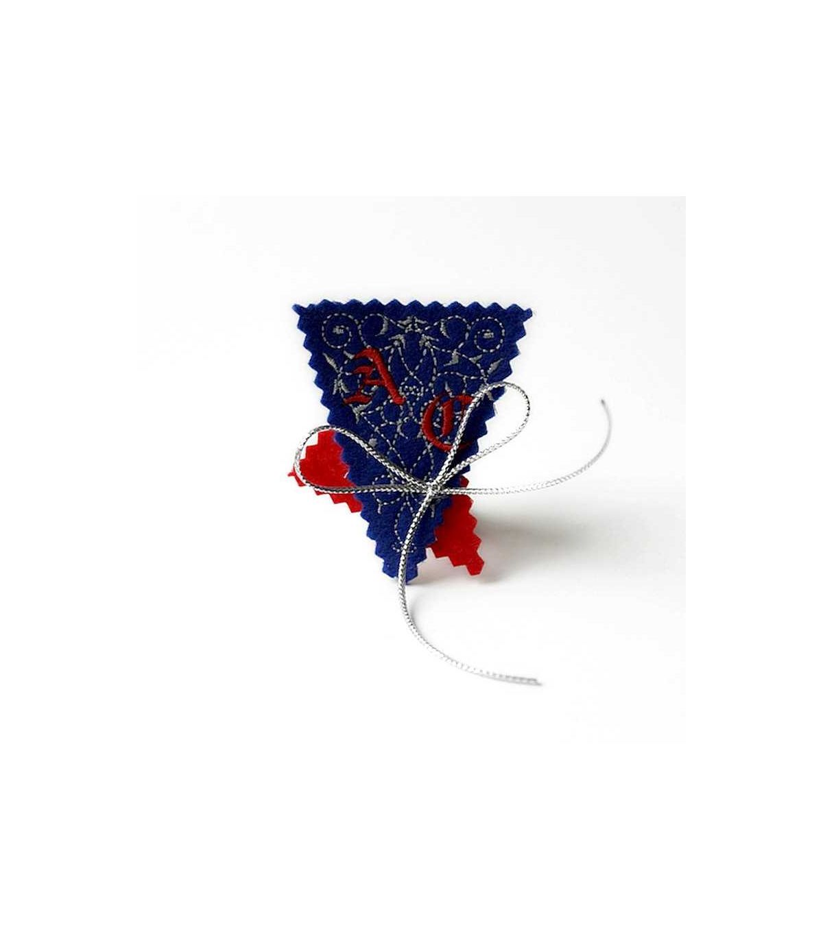 Aceasta marturie de botez tip brosa este personalizata prin brodarea initialelor pe cerculetul din material
