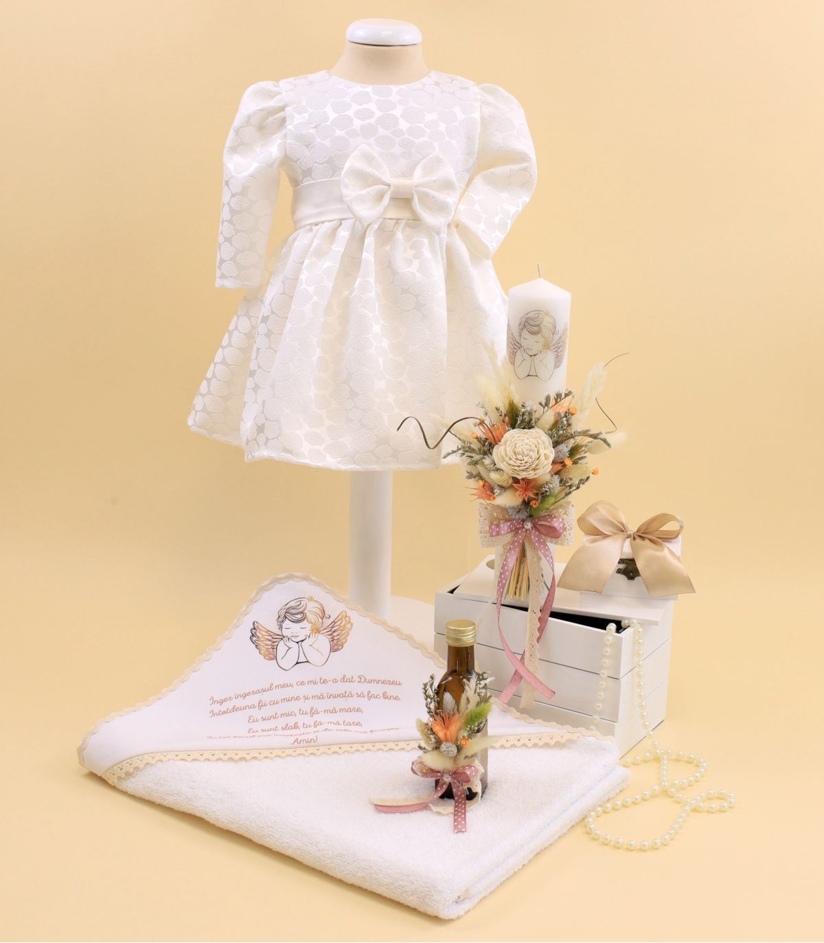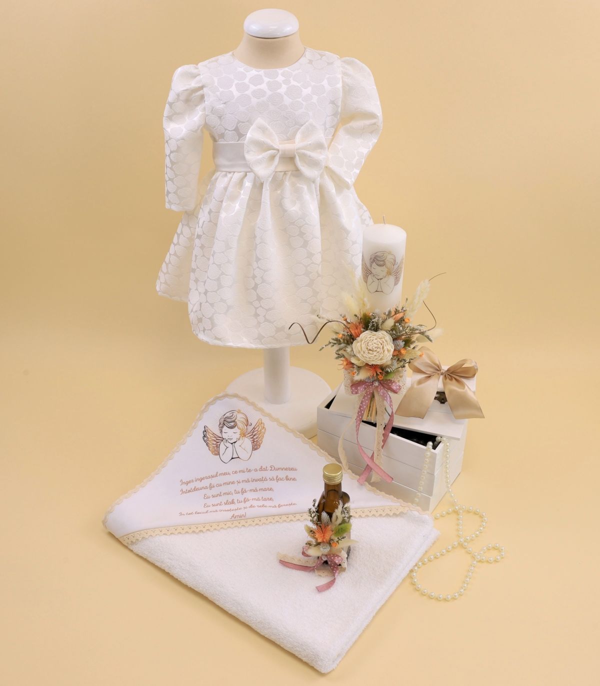 Dăruiește-i finutei tale trusoul complet de botez, creat cu dragoste pentru a-l primi în biserică cu pace și bucurie.