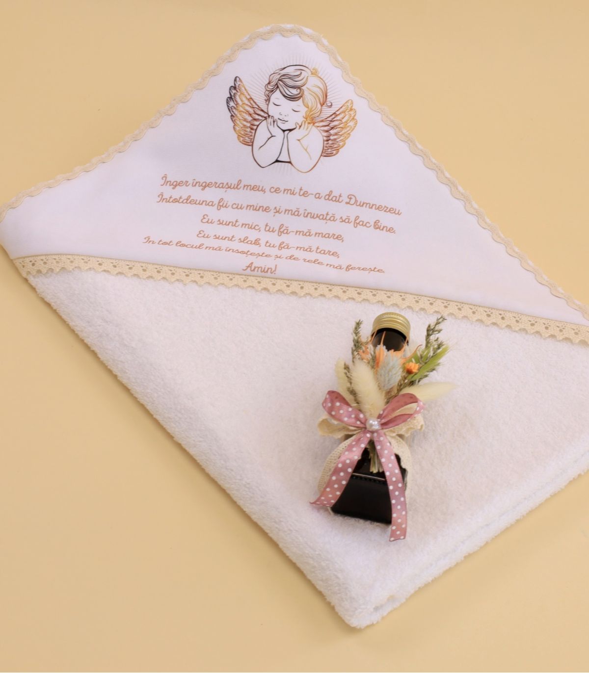 - Prosopul bebelusului, cu capison, infrumusetat cu imaginea ingerasului si rugaciunea inger ingerasul meu