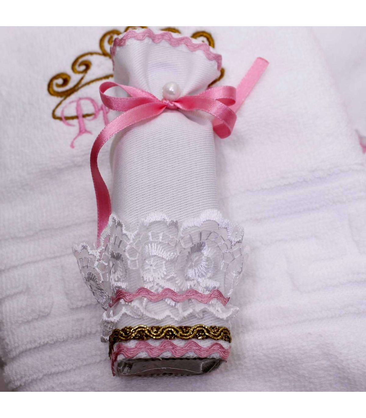 Set rochita cu dantela, lumanare cu flori si...